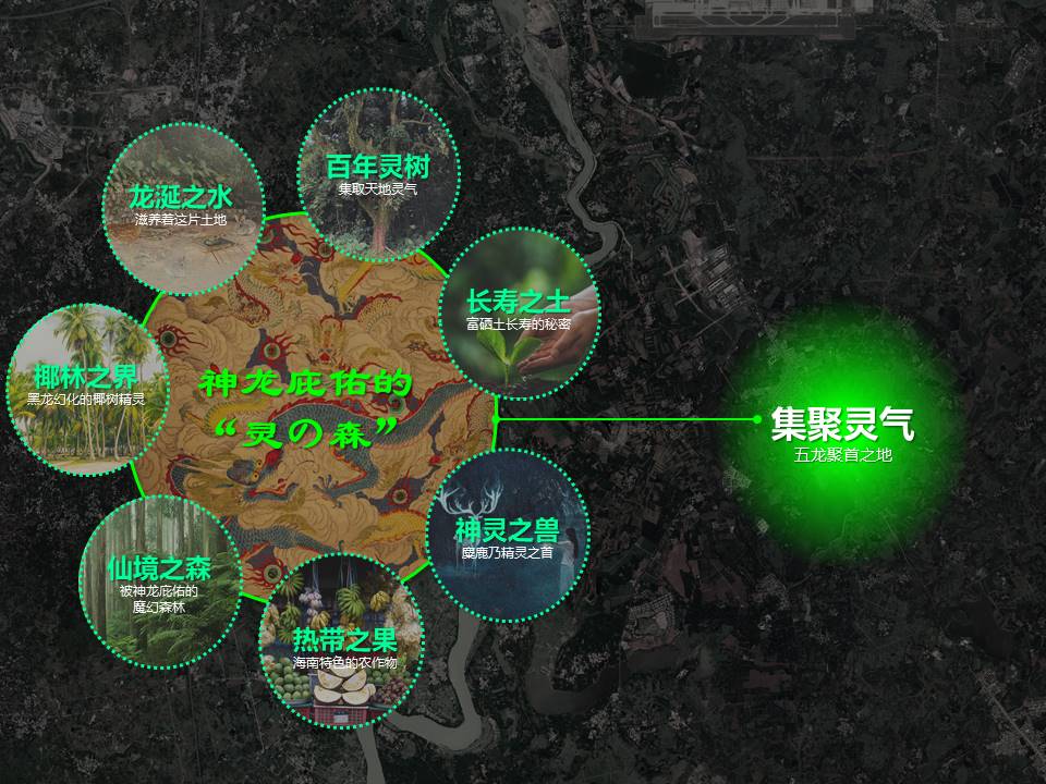 一、將基地特性與文化、布局巧妙結(jié)合,形成景區(qū)化開發(fā)。本案整體設(shè)計(jì)適應(yīng)海南康養(yǎng)大勢(shì),結(jié)合道讓村本地的地理特點(diǎn)和文化特點(diǎn),引用崇龍文化和精靈文化的特質(zhì),將本案打造成一片被神龍靈氣庇佑的“愛(ài)之森”,創(chuàng)造獨(dú)屬于本案的全新的理想?yún)擦稚罘绞健?nbsp;